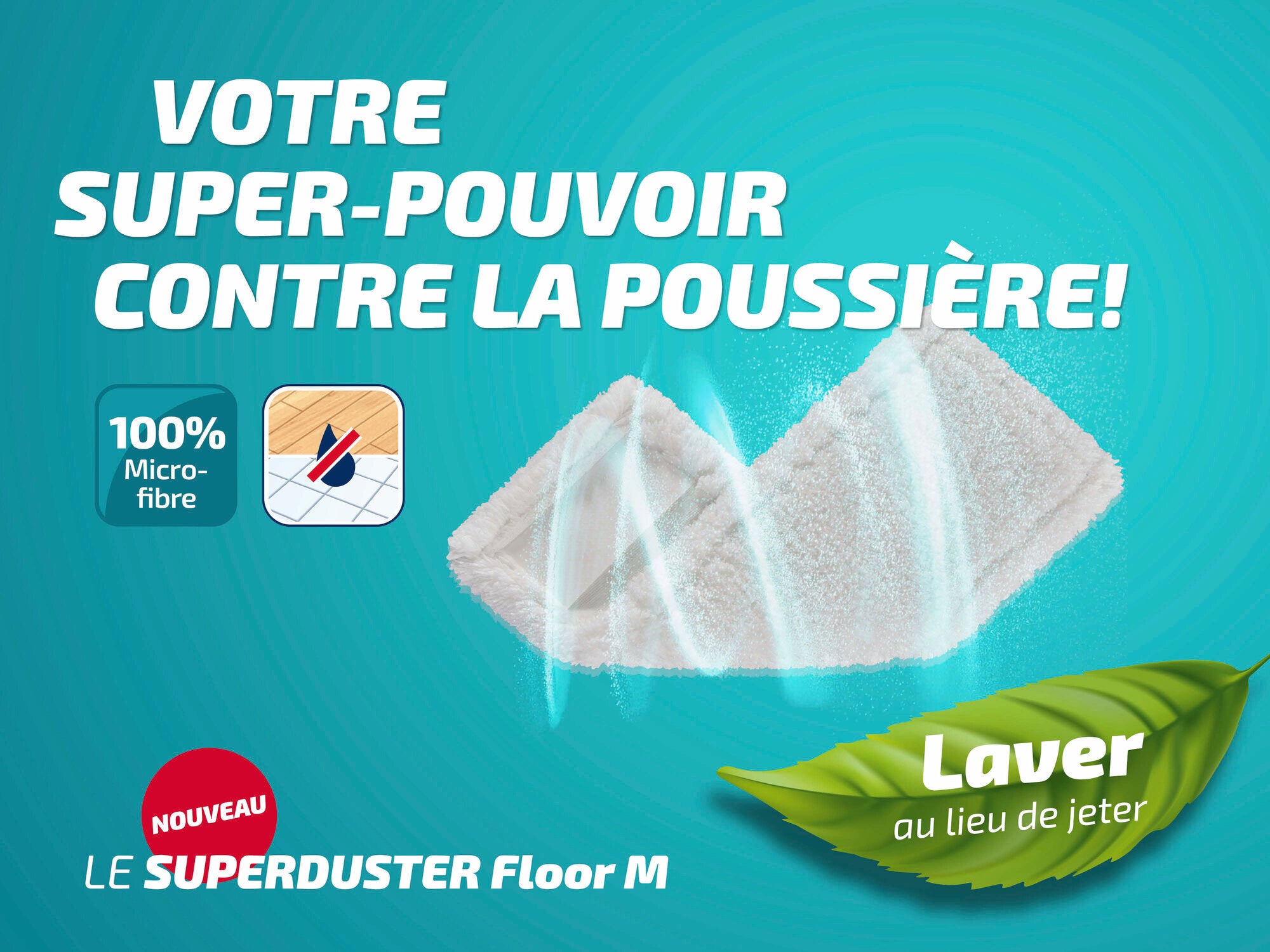- La housse SUPERDUSTER FLOOR M 100 % microfibre fait merveille sur tous les sols durs, qu'il s'agisse de carrelage, de parquet ou de stratifié : la poussière n'a aucune chance.
