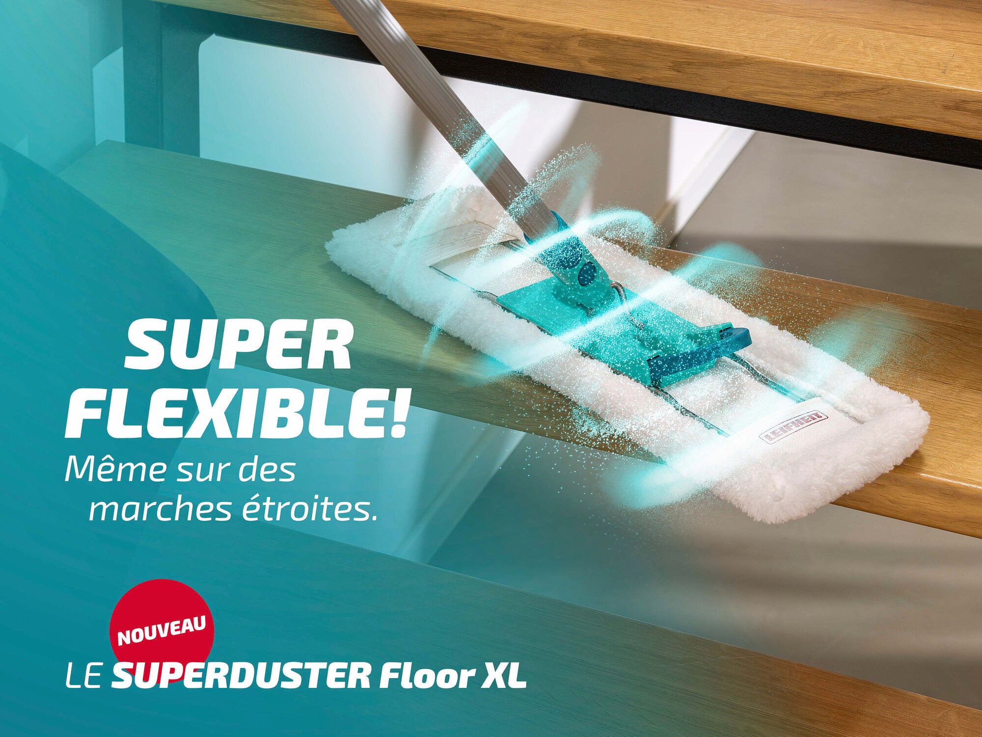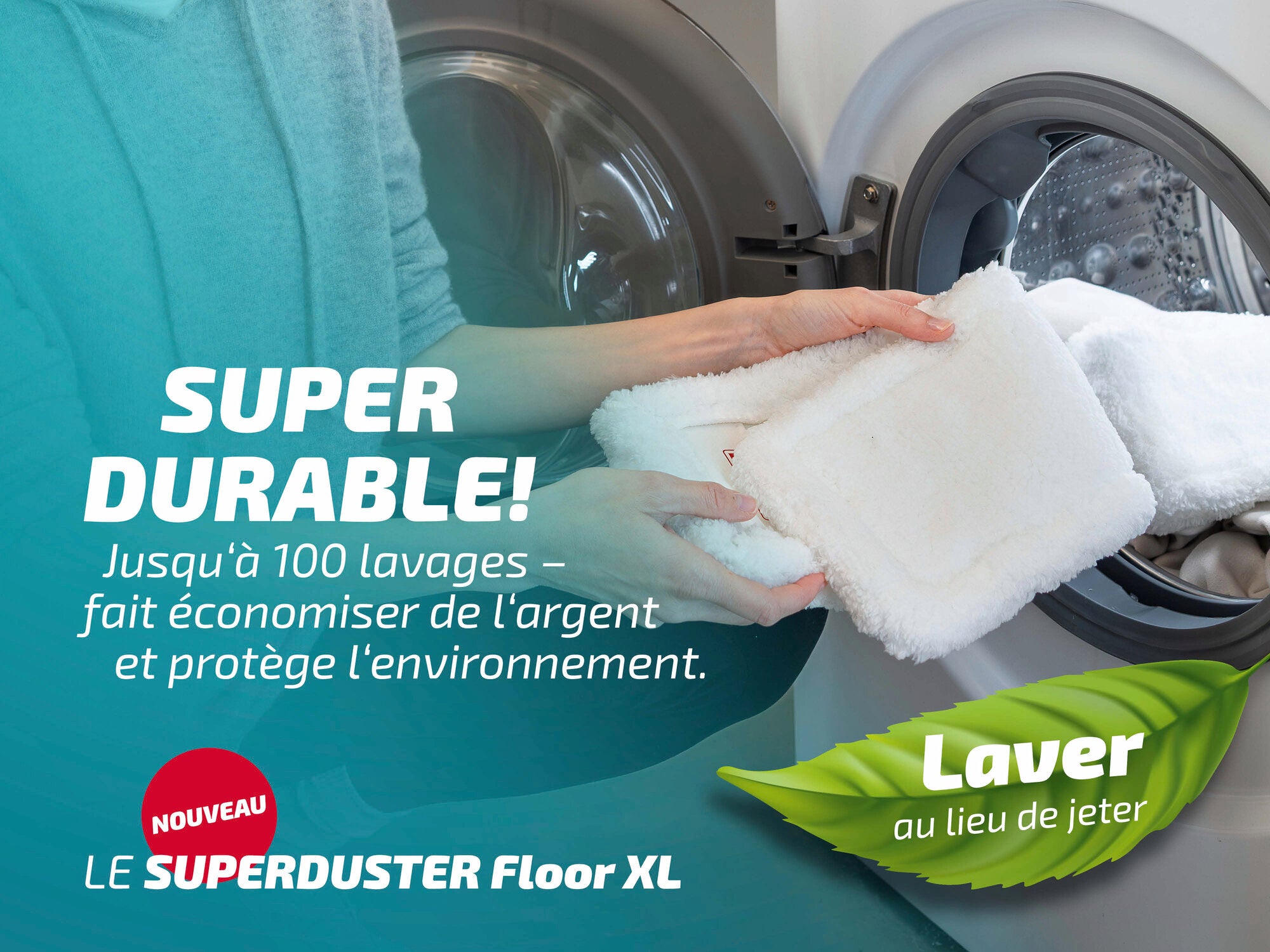 Laver au lieu de jeter ! La grande housse pour balai à franges SUPERDUSTER Floor XL montre comment fonctionne aujourd'hui le nettoyage moderne des sols : en profondeur, de manière durable et sans aucune complication.