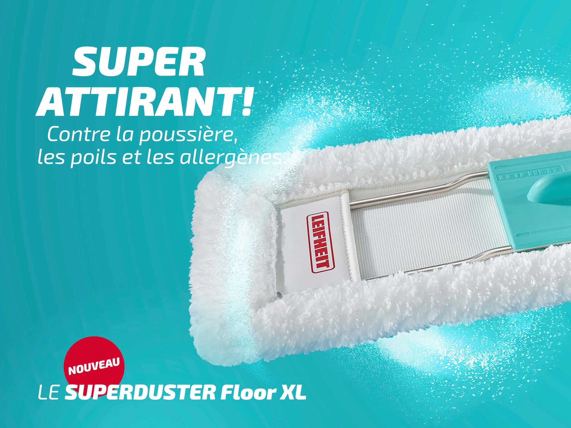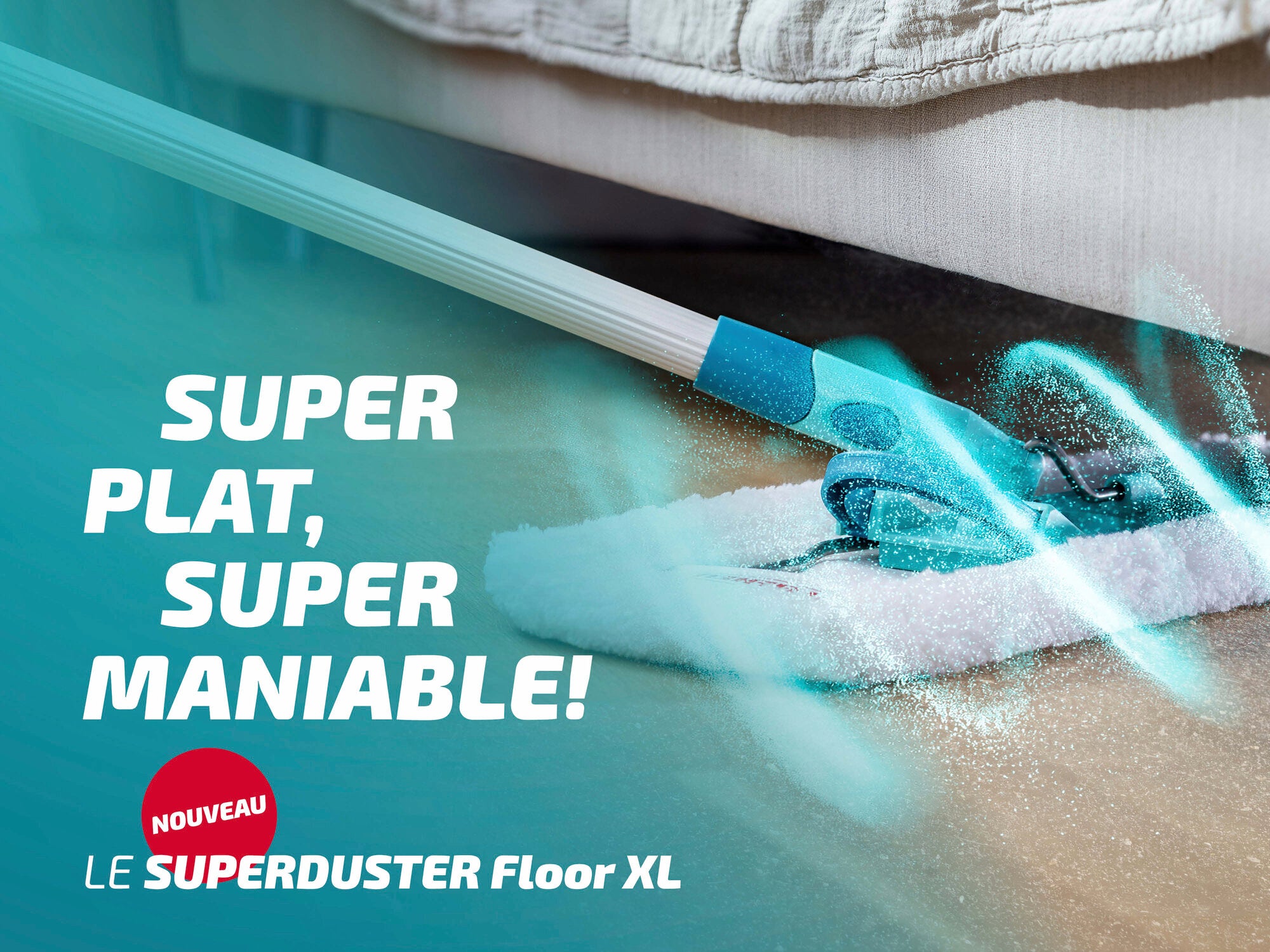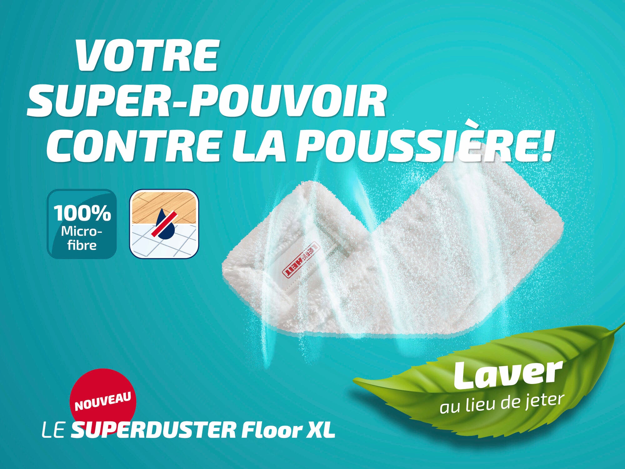 - La housse anti-poussière du SUPERDUSTER Floor XL est composée à 100 % de microfibres et convient aux sols durs tels que le carrelage, le parquet ou le stratifié. La poussière, les cheveux et les allergènes disparaissent comme par magie.
