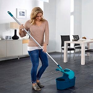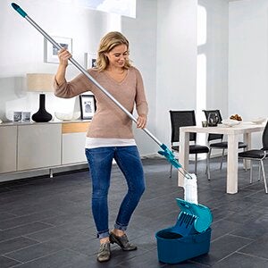 - l’ensemble de Leifheit (balai, seau, serpillière inclus) offre une largeur de nettoyage de 42 cm