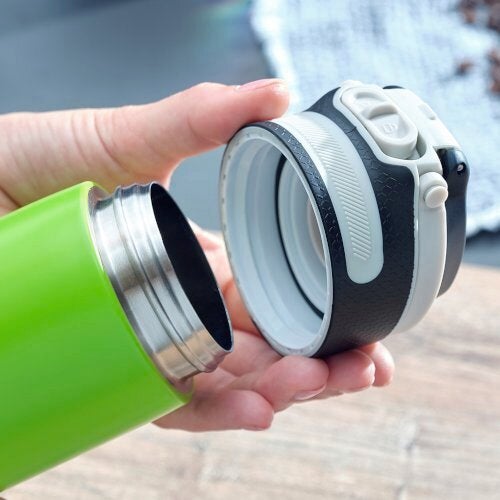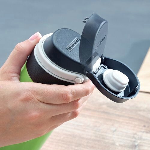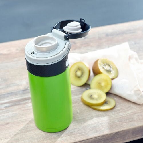 Le gobelet isotherme Flip 350 ml kiwi de Leifheit permet non seulement d’ouvrir facilement le gobelet d’une seule main au moyen du bouton-poussoir, mais il est en plus 100 % étanche et anti-fuites. Le gobelet est en outre exempt de BPA ainsi que d’autres substances nocives !
